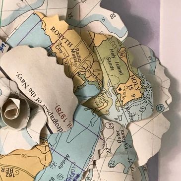 I use many different materials, from digital and original sheet music, vintage books, old maps and ephemera. My materials can often be over a hundred years old. The joy is that each piece is completely unique.
